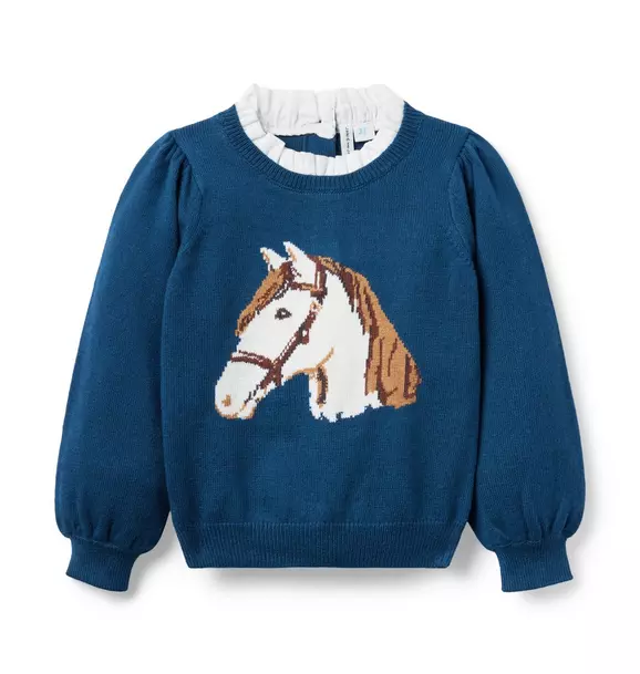 Horse Ruffle Collar Sweater