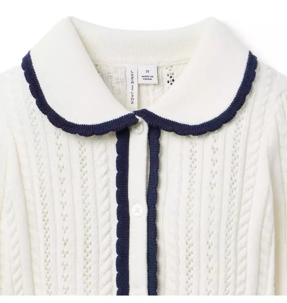 Pointelle Scalloped Trim Cardigan