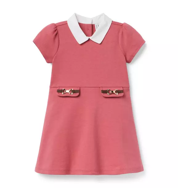 Rein in style with our equestrian-inspired dress. Designed with bridle bit details, faux sueded trim and a contrast collar.